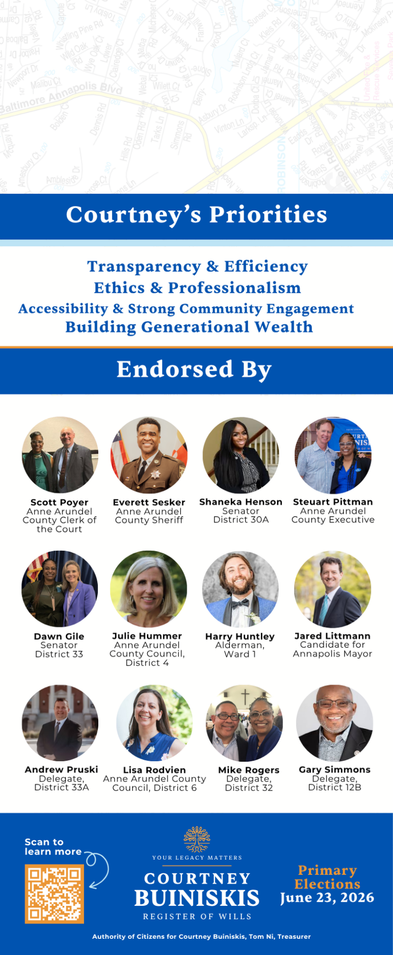 Courtney Buiniskis for Anne Arundel County Register of Wills